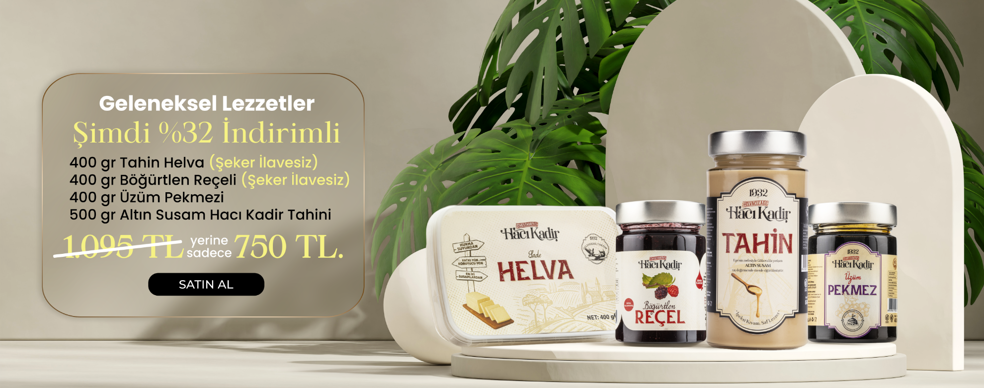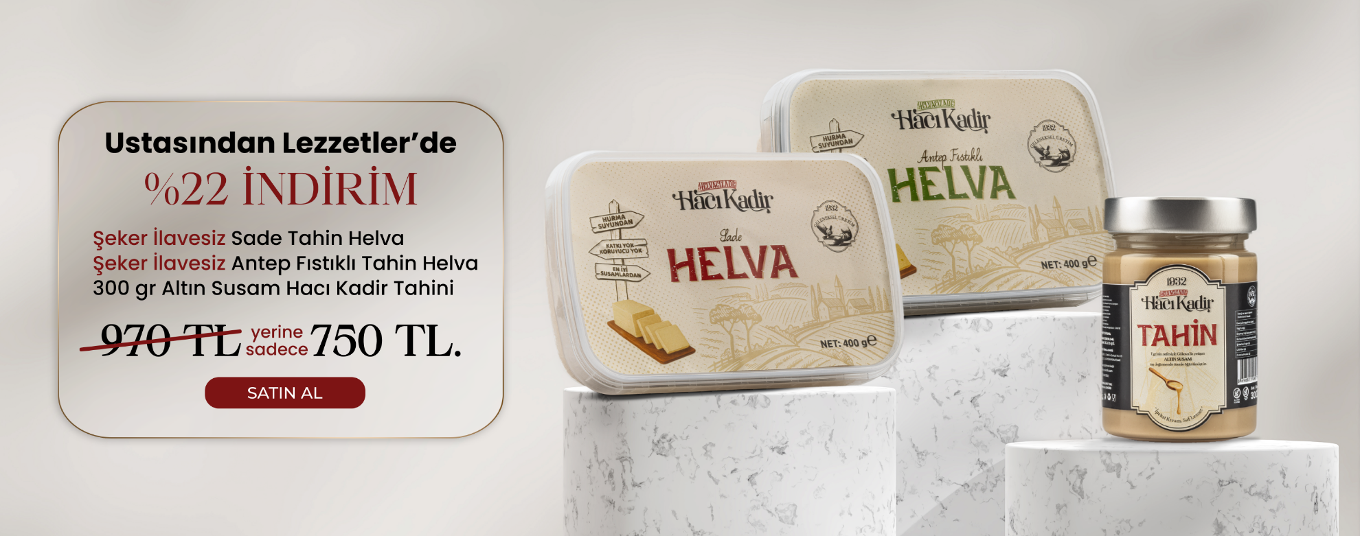 Lezzetiyle fark yaratan Hacı Kadir Tahini şimdi daha da ulaşılabilir! 5’i Bir Yerde Kampanyası ile 5 adet 500 gram “Altın Susam” tahin, 2.050 TL yerine sadece 1.500 TL. %26 indirim ve ücretsiz kargo fırsatıyla sizleri bekliyor. Hem daha avantajlı hem de kapınıza kadar teslim.
