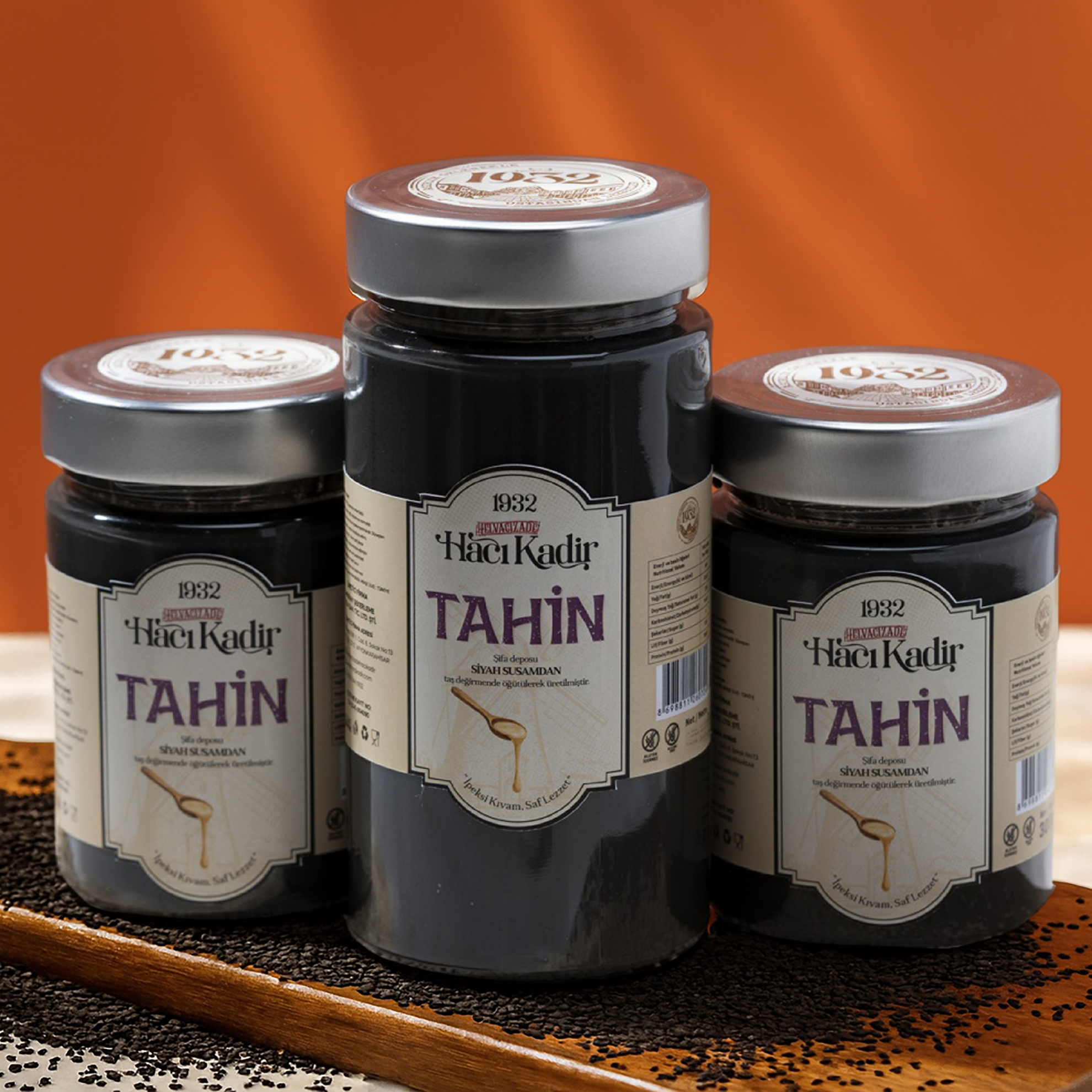 Hacı Kadir Siyah Susam Tahin, özenle seçilmiş siyah susamların taş değirmenlerde geleneksel yöntemlerle öğütülmesiyle üretilir. Yoğun aroması, kendine has koyu rengi ve yüksek besin değeriyle öne çıkar. Katkısız ve saf yapısıyla hem tatlı hem tuzlu tariflere zengin bir lezzet katar. 1932’den bu yana süregelen ustalığın ürünü olan bu tahin, doğal kıvamı ve güçlü aromasıyla sofralarınıza değer katar.